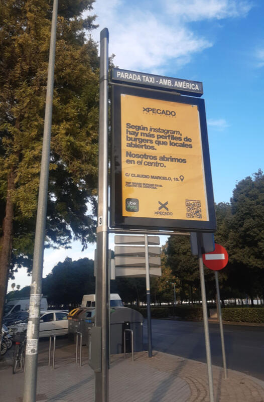 Cas de Llançament: Obertura Xpecado CórdobaEl Repte: Donar a conèixer la nova obertura de la cadena d'hamburgueseries a Còrdova, una ciutat amb una oferta de suports publicitaris molt limitada per la seva estructura urbana i protecció patrimonial.L'Estratègia: Davant l'escassetat de suports, redissenyem l'estratègia convencional de “gran impacte en poc temps”. Vam optar per dilatar l'estacionalitat de la campanya, ajustant el nombre de cares per prolongar la presència de marca als carrers. Així, el pressupost es va optimitzar per cobrir tot el període crític del llançament sense perdre pressió publicitària.El Resultat: Una campanya eficient i persistent que va aconseguir introduir la marca al mercat cordovès, maximitzant la rendibilitat de cada suport contractat.Gestió: Projecte desenvolupat íntegrament com a freelance en col·laboració amb Publipanel.